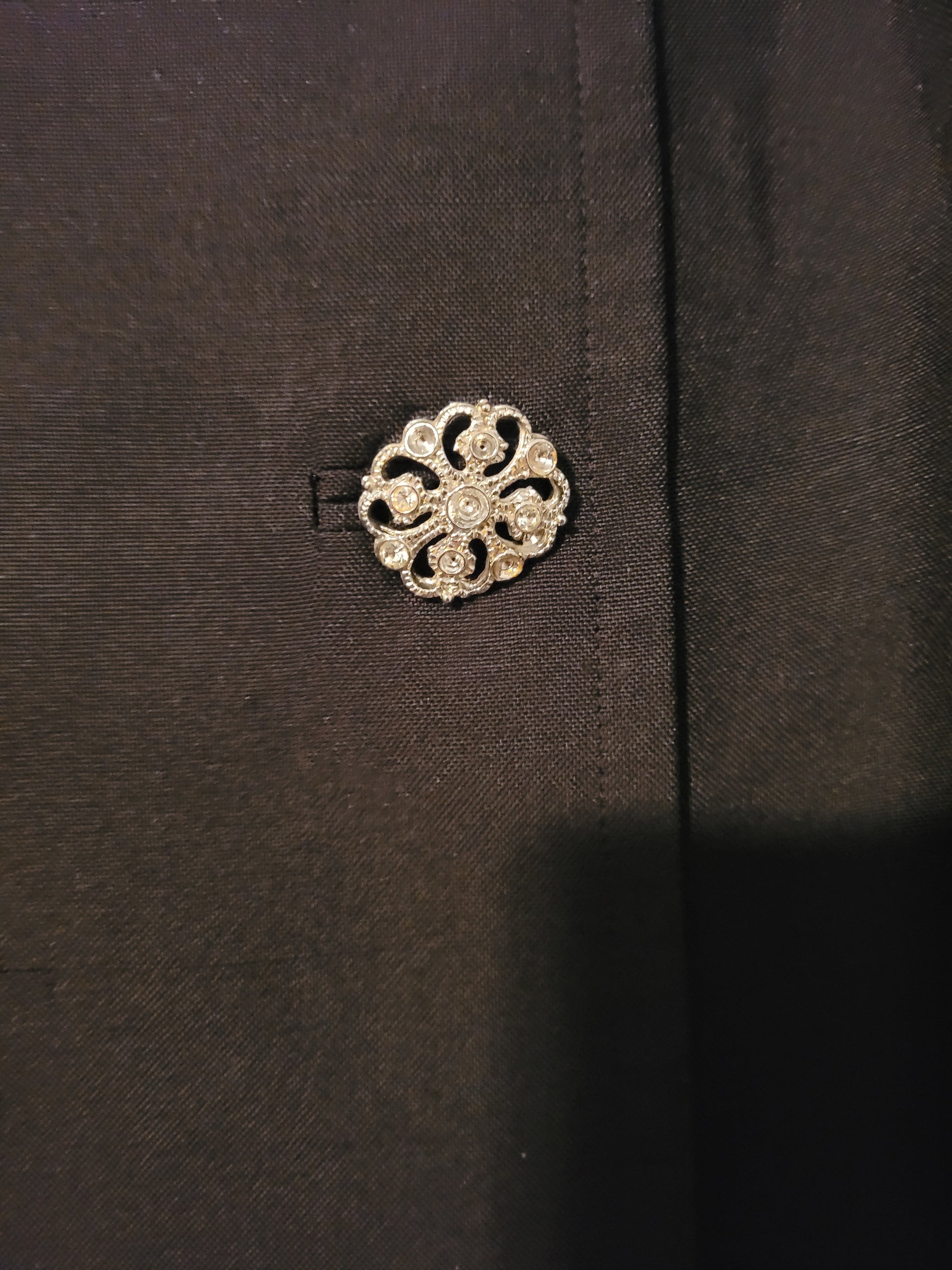 Black Silk Dress with Accented Diamond Buttons